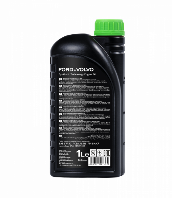 Innovative energy-saving synthetic engine oil for modern gasoline and diesel engines of FORD and VOLVO vehicles, specially developed for harsh conditions and extended engine oil change intervals.