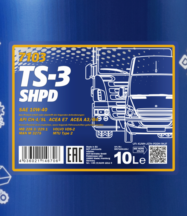 Designed for all types of heavy-duty diesel engines (long-distance trucks, buses, etc.), off-road machinery (construction, mining, agricultural) and special equipment from European, American and Asian manufacturers that meet the requirements of Euro I, II, III, IV where a performance level of CH-4 or lower is required.