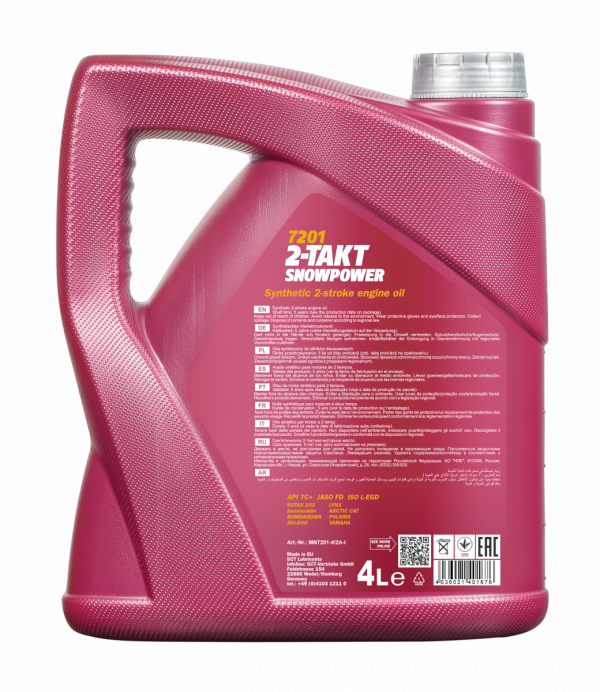 It is designed for two-stroke engines of snowmobiles, utility terrain vehicles, ATVs, scooters and other off-road equipment operating in cold weather whose required oil grade is API TC+ or JASO FD.