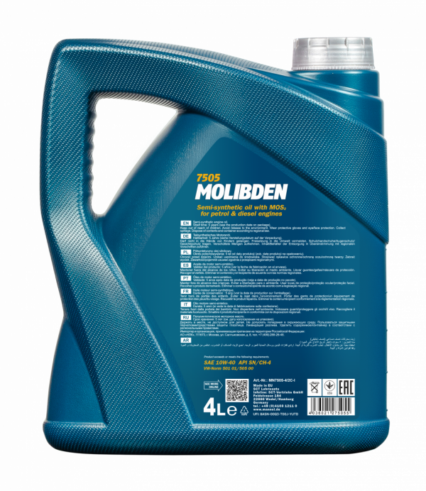 Universal motor oil on a hydro synthetic basis, specially developed for all types of gasoline and diesel engines, including heavy-duty engines. Contains organic and inorganic molybdenum (MoS2).